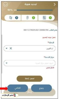 يتم حجز موعد للبصمة في الإمارات من خلال التطبيق أو الموقع الإلكتروني أثناء تقديم طلب الحصول على الهوية أو تجديدها.